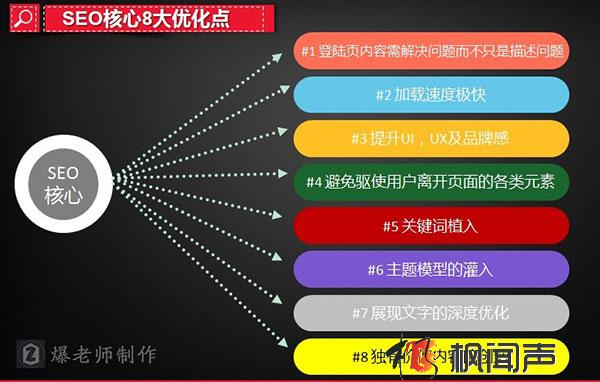 如果有人問你百度自然優(yōu)化的精髓是什么?希望答案不再是“狂發(fā)外鏈”了。如今百度不再是5年前的百度,大量的搜索引擎算法更新對SEO優(yōu)化思維和手法有了更高的要求。然而百度更喜歡系統(tǒng)化用戶體驗(yàn)偏向性的優(yōu)化,站內(nèi)優(yōu)化部分也不僅僅是靠關(guān)鍵詞和TITLE走天下的時代了。文軍數(shù)字營銷總監(jiān)、咨道學(xué)堂創(chuàng)始人、帥氣的爆老師總結(jié)了8個核心要素和思維走向,希望對SEO新手及要轉(zhuǎn)變思維的SEO人有所幫助。點(diǎn)擊想了解:全面系統(tǒng)的網(wǎng)站SEO優(yōu)化方案策略 。
