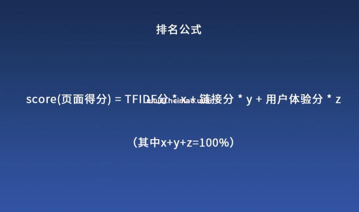 百度百科里面說了:“除了TF-IDF以外,因特網上的搜索引擎還會使用基于鏈接分析的評級方法,以確定文件在搜尋結果中出現的順序?!薄R馑际鞘裁矗磕闩琶梢杂上旅娴墓經Q定。文章得分=TFIDF得分+鏈接得分,百度搜索引擎在用TFIDF!!