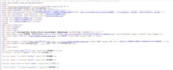 這個是正常內頁的頭部。明顯的,黑帽的還用的是HTML5,而正常的頁面還是用XHTML(HTML4.0過渡)。黑帽還是跟進新時代的,用最新的技術。