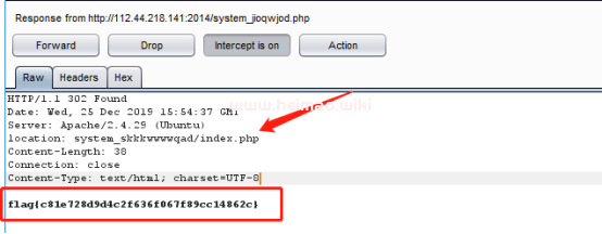 (4)訪問http://112.44.218.141:2014/system_jioqwjod.php使用burp截包得到flag: