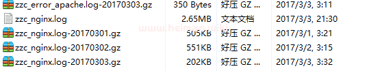 進入日志文件夾,你會發現,日志文件是按每一天的訪問情況為一個文件保存的: