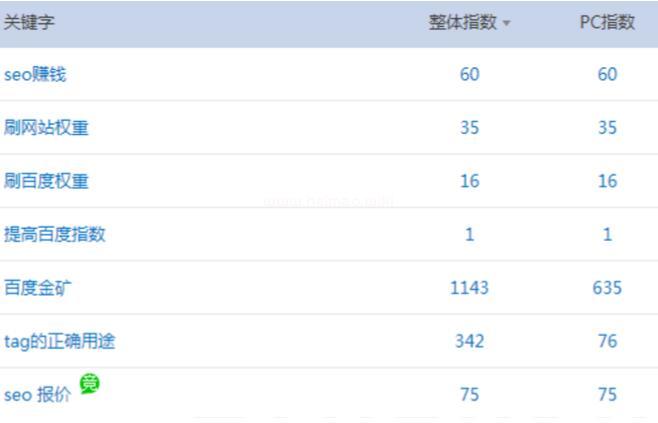 比如關(guān)鍵詞:百度統(tǒng)計(jì)熱力圖、現(xiàn)在做什么生意賺錢、alexa等關(guān)鍵詞,通過百度指數(shù)查詢,其實(shí)都是有指數(shù)的,并且小編的站點(diǎn)目前可以競(jìng)爭(zhēng)捎帶商業(yè)價(jià)值的詞了,比較小編博客運(yùn)營(yíng)有些年份了,雖然沒有一直維護(hù),但基礎(chǔ)也沒有丟掉,所以優(yōu)化這類詞其實(shí)也是非常簡(jiǎn)單的,但對(duì)于新站優(yōu)化這類詞可能就有點(diǎn)難度了。如果你是新站,建議再選擇一些偏冷門一點(diǎn)的詞。