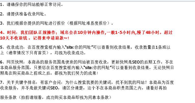首先可以肯定的告訴你,一個新站建立以后,10分鐘內(nèi)收錄是有一定難度的,光提交到抓取審核收錄這個流程實際上就不只是10分鐘了,就算有良好的蜘蛛池給你新站引蜘蛛10分鐘收錄也是有難度的。所以說商業(yè)也做不到這一點的,那么咱們點開他們的寶貝詳情來看看!有7個條款,其中第四條被標(biāo)注的特別明顯。
