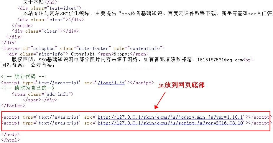 3,把js文件放到網站最底部,先讓網頁加載出來,最后加載js,會提升網頁速度!