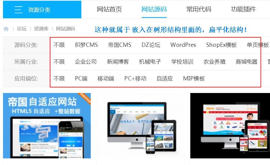 2,利用用戶體驗,這種結構非常方便用戶查找內容,因為樹形結構突出了欄目的層次,總體來說分類是比較直觀的,所以更利與訪客查找自己所需的內容!