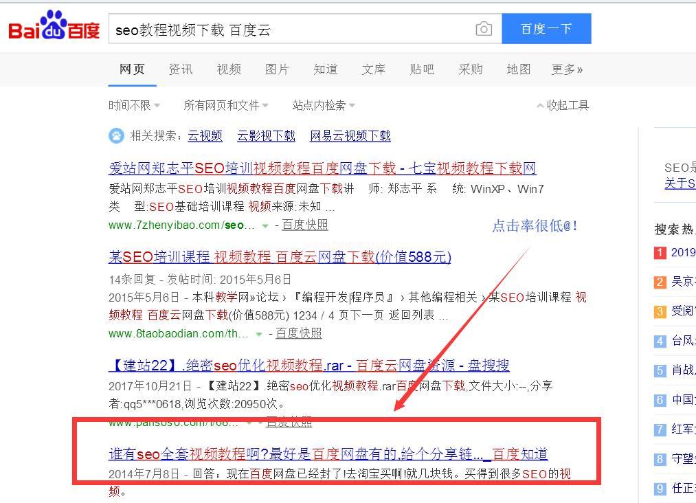 你當前的關鍵詞的確是排名了首頁,但是排名位數低,在8-9名左右,如果指數稍微偏小一點,可能一 個點擊都沒有,大部分的人都會點擊前5-6名的結果,后面的結果除非非常吸引用戶,否則很難獲得點擊, 所以如果想獲得流量,請把你的關鍵詞進行一個提升,才會獲得,或者說可以增加你的網站流量。