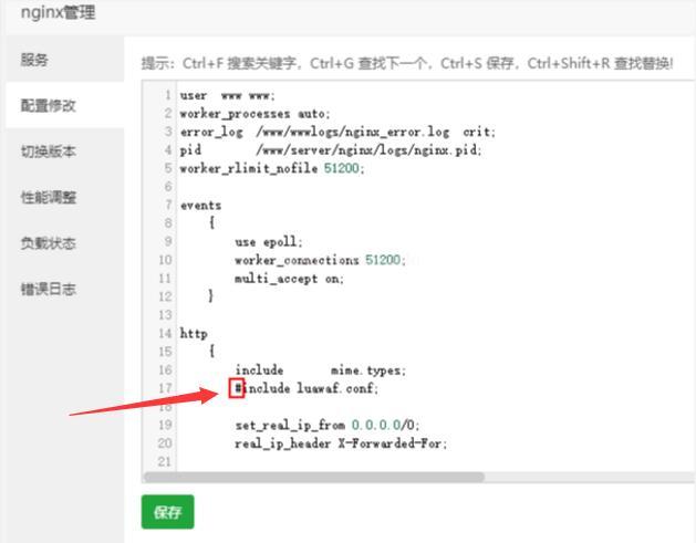 我們找到#include luawaf.conf;,然后把前面的#去掉(“#”代表注釋),保存并重啟 Nginx。