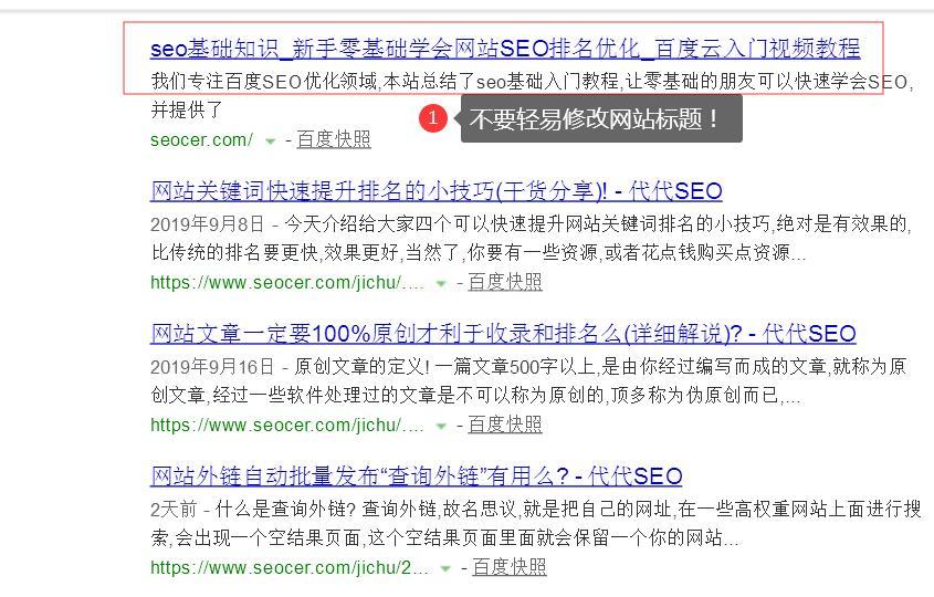新站剛開始運營,或者過了審核期,或者沒有過審核期,都不要輕易的去修改網站標題和網站內容,為什么?很容易讓百度認為網站很不穩定而造成降權,會給自己網站帶來很大的危害,很容易被百度降權,切記!