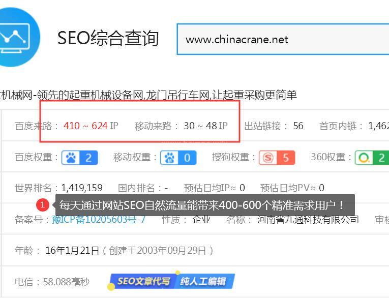 有些渠道推廣量還算很多,但是都不精準,大家試想一下,通過搜索某一個詞,比如“吊車框制作廠家”來到你網站的客戶,是不是都是意向客戶,精準客源,每一個客戶都有可能成交對吧,其實SEO的優勢就在這里,不單單幾百流量,幾千流量不花一分錢,而且客源都是精準客源,這是其他推廣方式,比不了的!也是沒法去比的。
