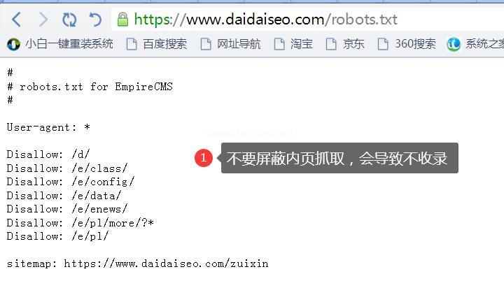 第四點就是要檢查,你當前的程序SEO是否做到位,比如頁面加載太慢,都是js,標簽不完整,SEO細節做的不到位等等,自己看教程,然后對照下,不好的地方,請立即更改,另外需要看下自己的robots.txt其中是否有屏蔽百度蜘蛛抓取的指令,如果有,請刪除即可,放行百度蜘蛛去抓取。
