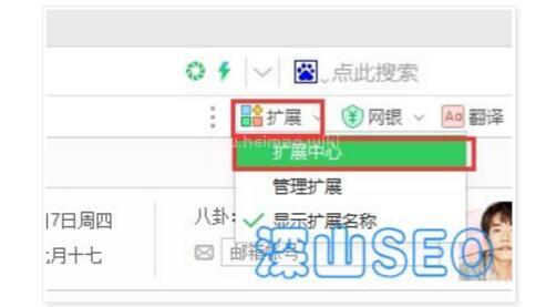 1.打開360瀏覽器,拓展—>拓展中心