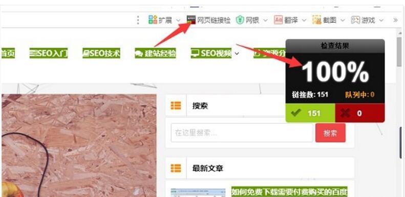 4.我們打開一個網站頁面,然后點擊一下這個工具,就可以查找這個頁面的死鏈接了