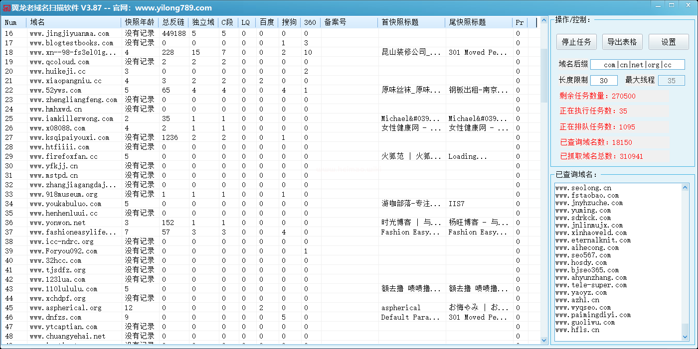 翼龍老域名掃描軟件是根據關鍵詞進行老域名挖掘,一天可以挖掘幾百到幾千個老域名,每個老域名都有詳細的信息供你判斷老域名好壞,例如反鏈,pr,歷史建站數據等等信息。