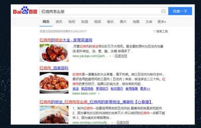 例如:紅燒肉怎么做?如下圖所示,既可以看到一些文字+內容的說明,也有一些視頻的介紹。
