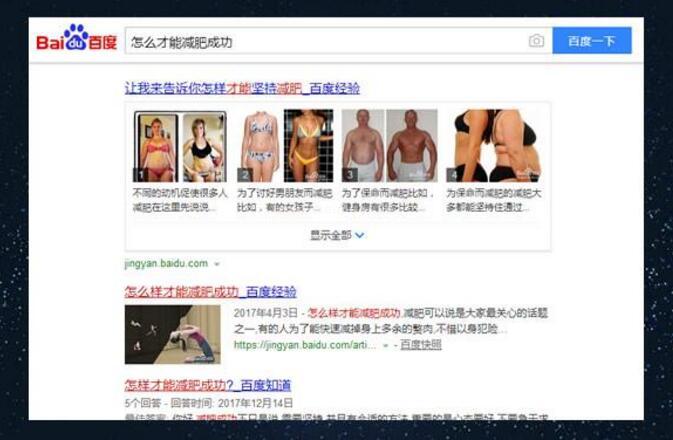舉例:我們在百度搜索:怎么才能減肥成功?如下圖所示