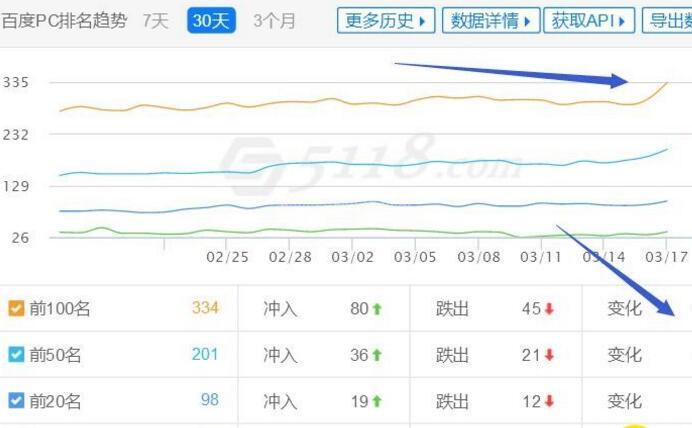 首先是網(wǎng)站排名詞庫的監(jiān)控,我們一般都是去5118進(jìn)行監(jiān)控,因為5118監(jiān)控網(wǎng)站詞庫是比較敏銳的,比站長之家,愛站都敏銳很多,如果排名曲線一直很平穩(wěn)的上升,或者維持在一個平均量,則表明網(wǎng)站每有什么問題,如果排名曲線,不斷下滑,連續(xù)5-7天都下滑,網(wǎng)站一定是有問題,需要全方位去排查。