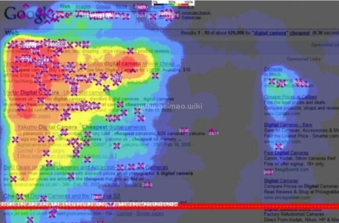 看到以上的圖片,我們可以分析出來,排名靠前的都是紅色的,點擊量越高的,越靠后面的,點擊越低,因此我們可以分析出來,排名靠前的內容是有利于用戶的,也是用戶想找到的內容。而我們網站也是如此,點擊量多的,我們可以把那個欄目放置到顯眼的位置,讓用戶更加注意我們網站的亮點,同時把那些經常沒有人點擊的,可以下架,或者放置到不顯眼的位置,不要干擾了用戶的眼球。