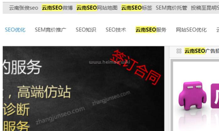 而咱們打開其他關于云南SEO的站點,你可以發現,站長不僅僅在標題上出現了相關的關鍵詞以及文章,甚至就連廣告位的地方都不放過堆砌關鍵詞等手段,兩種方式都能上排名,這也足以證明,發布太多相關的內容價值并不是很大。