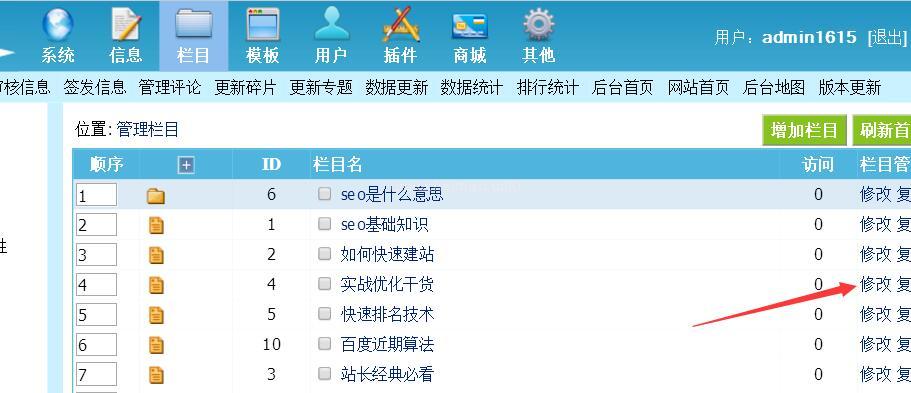 1,進入后臺,點擊欄目--》管理欄目!