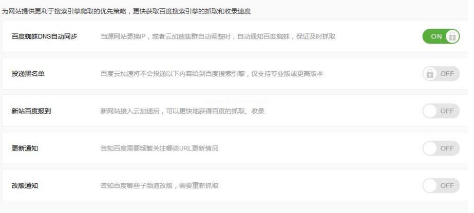 當然,以上功能限于不同版本,百度云加速付費門檻比較高,最便宜的專業(yè)版也要一年2490元,這對草根站長來說不可思議。但是,百度云加速免費版,還是有一些功能可以使用。