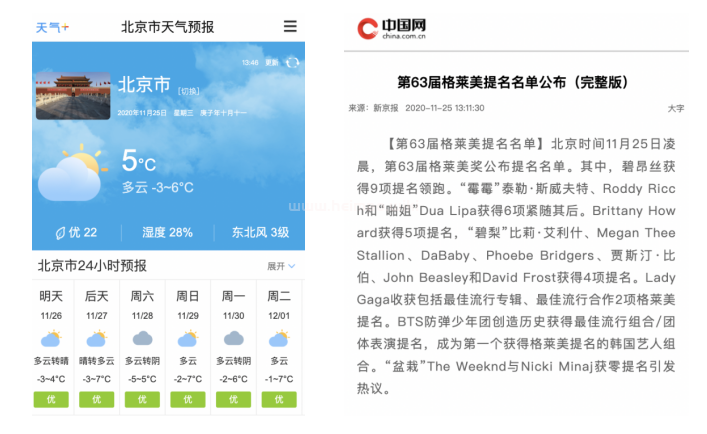 天氣預報和獎項公布名單都是時效性要求非常高的內容