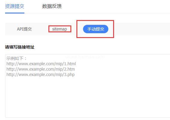 當(dāng)然,我們也可以選擇sitemap地圖文件和手動(dòng)提交的方式,如下圖所示:
