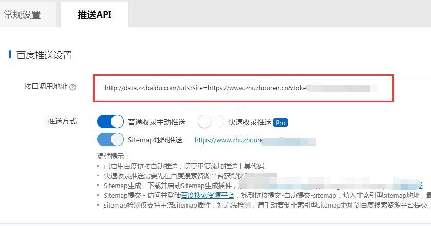 在插件頁面配置好百度搜索的API準入密鑰,可以在百度站長平臺獲取,如下圖所示: