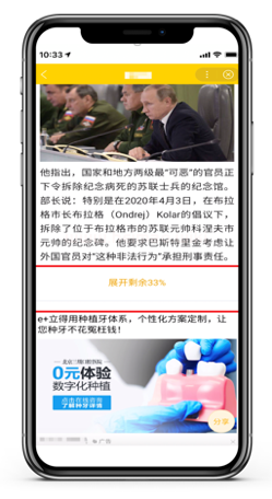 頂部嵌入不超過該屏面積10%的圖文廣告樣式。
