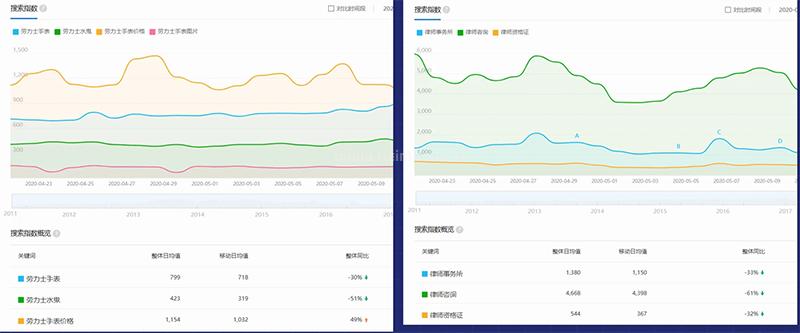 另一個(gè)關(guān)鍵詞為“律師事務(wù)所”,“律師咨詢”這個(gè)關(guān)鍵詞指數(shù)有5000多,最高的時(shí)候達(dá)到了6000,“律師事務(wù)所”這個(gè)關(guān)鍵詞指數(shù)在1000左右,”律師資格證“這個(gè)關(guān)鍵詞指數(shù)在1000以內(nèi),如果你是新站肯定不能選擇“律師咨詢”這個(gè)關(guān)鍵詞,因?yàn)楦偁幎忍罅耍覀兛梢韵冗x擇其它的關(guān)鍵詞,例如可 以選擇”律師資格證“、“律師事務(wù)所”這些關(guān)鍵詞,因?yàn)檫@關(guān)鍵詞競爭度低一些,后期網(wǎng)站流量、關(guān)鍵詞排名上來了,再去選擇優(yōu)化“律師咨詢”這個(gè)關(guān)鍵詞。