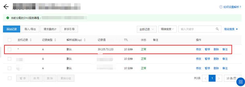 點擊確定以后,域名泛解析記錄就成功添加完成了。